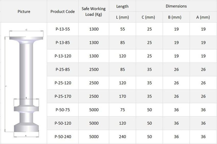 2) Las cargas de capacidad son axiales con factor de rotura de seguridad igual a 3.