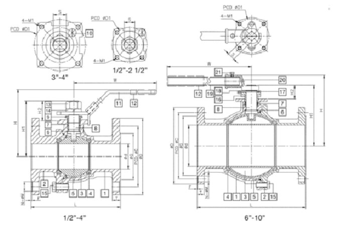 - Válvula de bola flotante de brida de acero inoxidable de 2 piezas